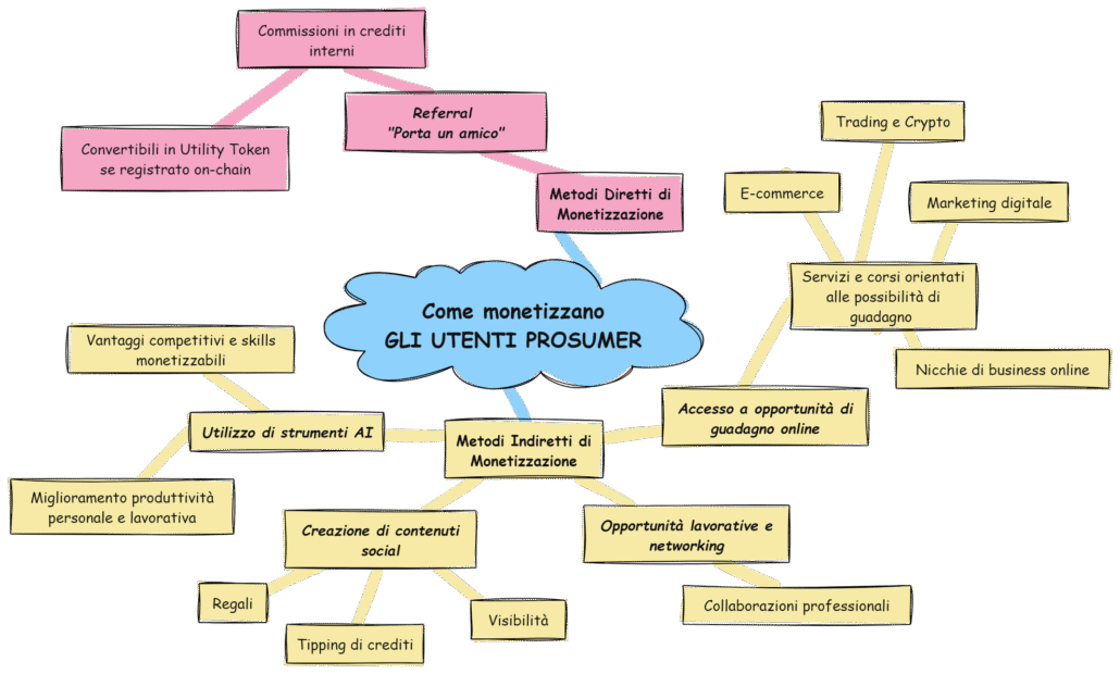 Questi utenti operano con un approccio “casual”, promuovendo più passivamente le opportunità della piattaforma tramite il passaparola con amici e parenti. Questo modello li rende prosumer, ovvero consumatori attivi che, oltre a utilizzare la piattaforma, ne promuovono le opportunità.